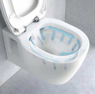 Система слива без ободка обеспечивает более равномерное и мощное распределение потока воды. За счёт этого достигается отличный смыв при меньшем расходе жидкости — экономия составляет до 30%. А если в вашем доме установлены водосчётчики, такая особенность положительно скажется на ваших ежемесячных платежах.