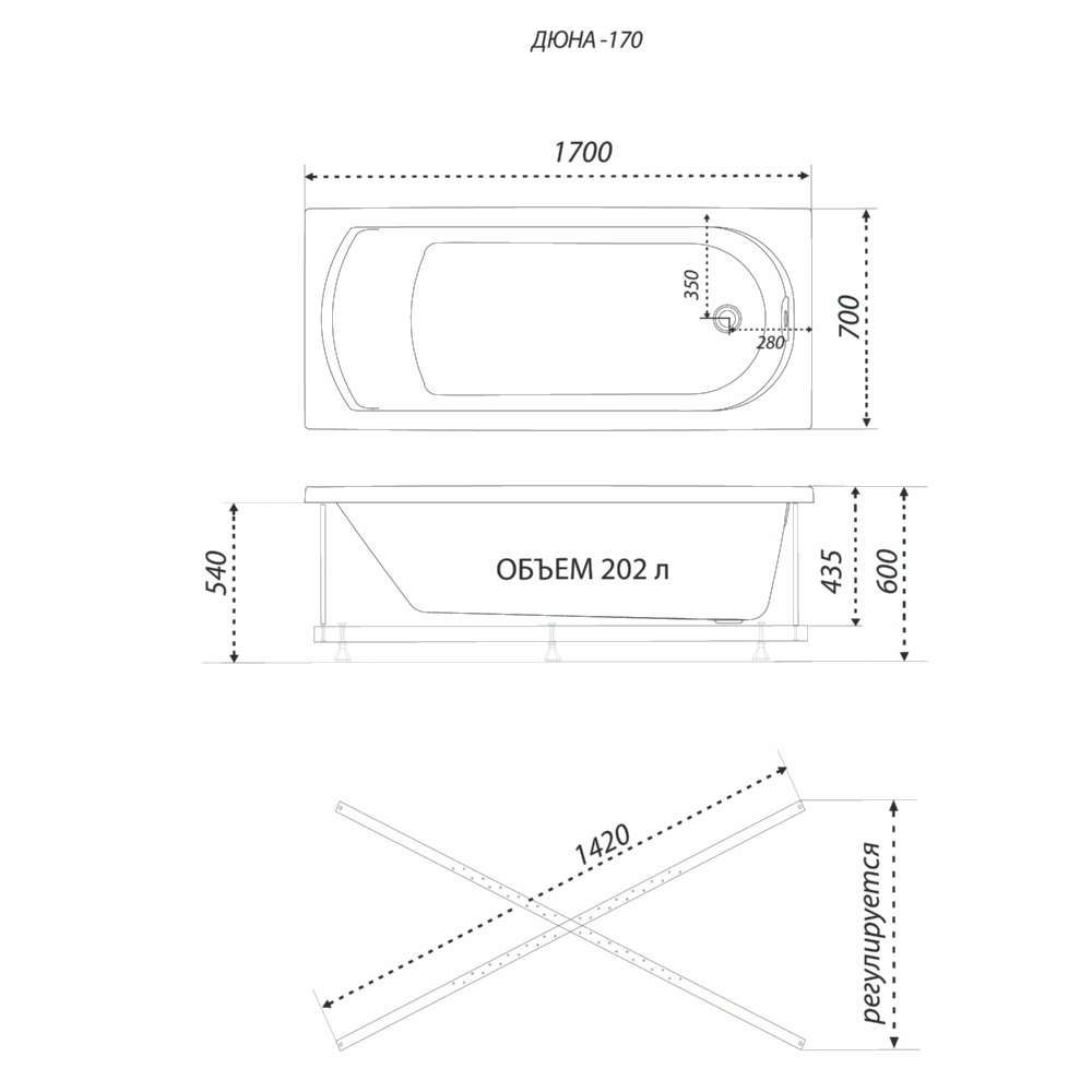 Акриловая ванна 1ACReal Дюна Щ0000046114 обрезанная 170x70 см белый купить