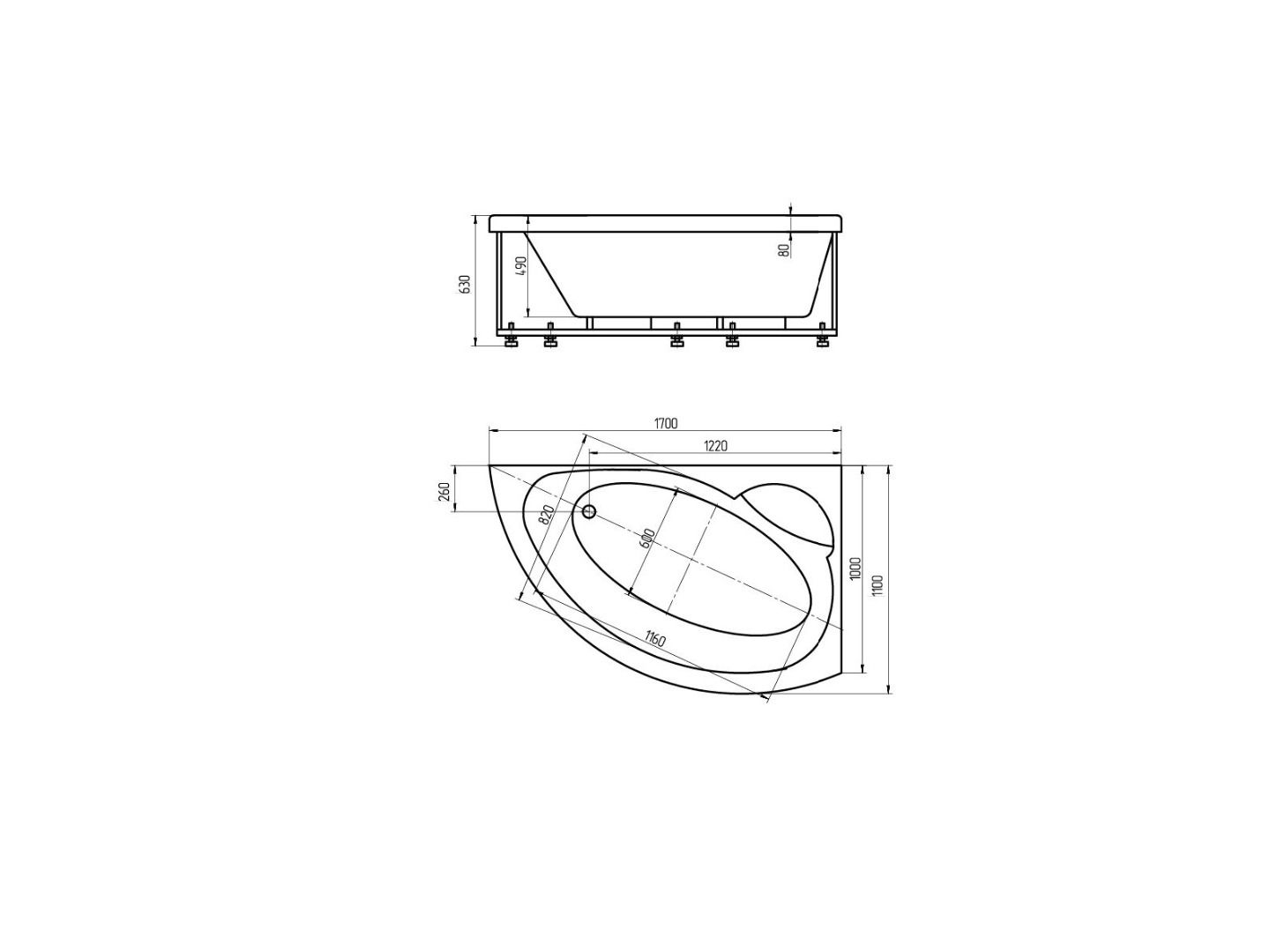Акриловая ванна АКВАТЕК Аякс 2 170x110 см правая
