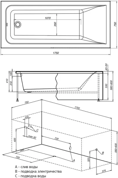 Акриловая ванна Aquanet Bright 175x75 создана с учетом растущего спроса на ванны простой прямоугольной формы в популярных размерах. Это модель с прямыми бортами и пологой спинкой, где соблюден идеальный угол для комфортного нахождения в ванне. Спинка плавно перетекает в бортик, поэтому релакс гарантирован даже без использования подголовника. Все линии ванны подчинены строгим законам эргономики. В современных условиях ширина ванны 75 см при длине 175 см - это наиболее востребованные габариты, так как прекрасно вписываются в стандартную планировку современных ванных комнат. Чаша в этой ванне устроена таким образом, что для обозначенных размеров в ней достигнут максимально возможный внутренний объем, а именно 186 литров, и это при комфортной глубине в 410 мм от слива ванны до борта. Ванна рассчитана на нагрузку свыше 300 кг, так что даже крепкий мужчина сможет без опаски находиться в ней. Двойной слой армирования обеспечивает надежность чаши, а закладные из МДФ-плит в местах наибольшей нагрузки усиливают эффект.