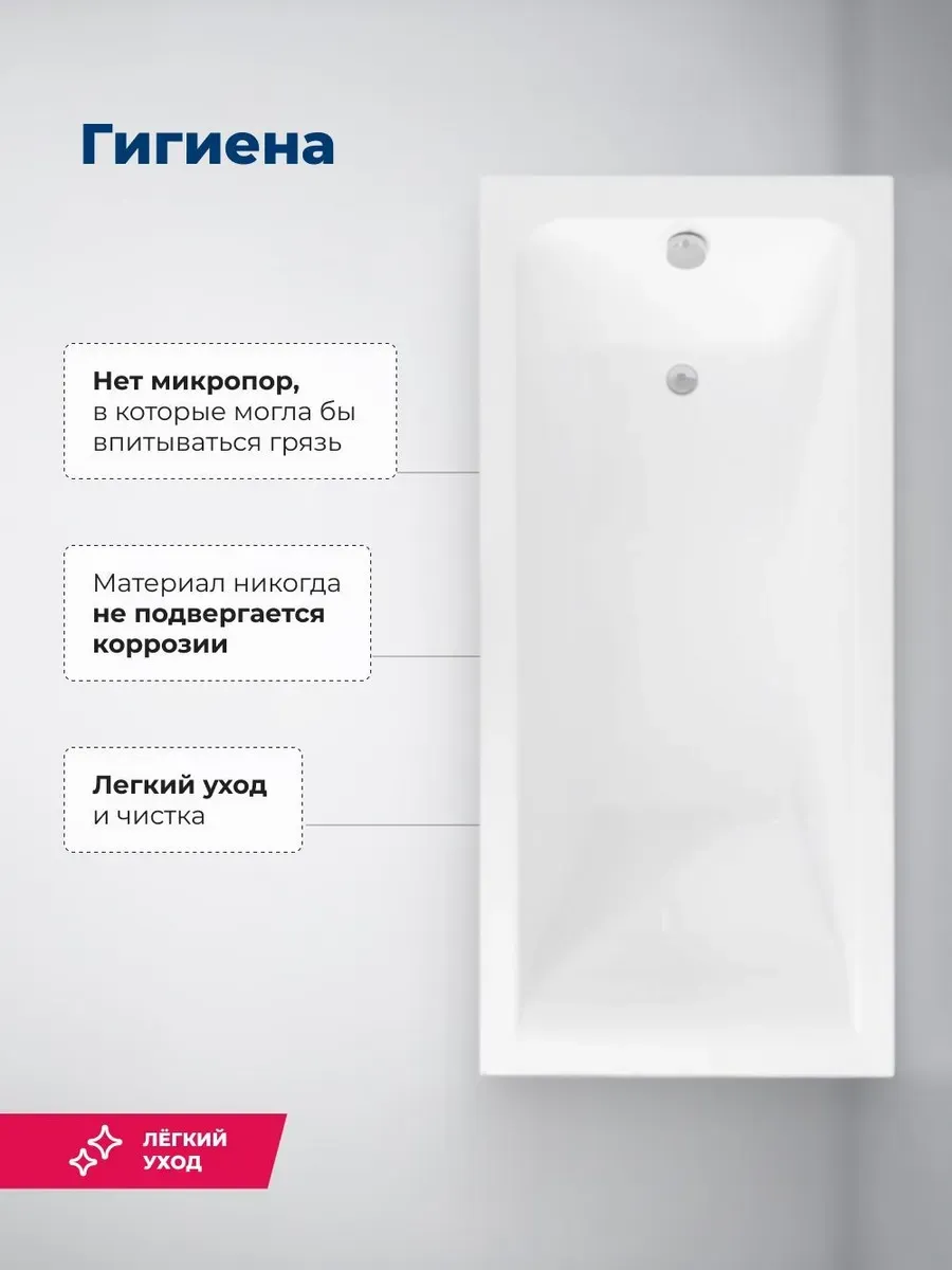 Акриловая ванна Aquanet Bright 180x80 создана с учетом растущего спроса на ванны простой прямоугольной формы в популярных размерах. Это модель с прямыми бортами и пологой спинкой, где соблюден идеальный угол для комфортного нахождения в ванне. Спинка плавно перетекает в бортик, поэтому релакс гарантирован даже без использования подголовника. Все линии ванны подчинены строгим законам эргономики. В современных условиях ширина ванны 80 см при длине 180 см - комфортные габариты, которые, к тому же, прекрасно вписываются в стандартную планировку современных ванных комнат. Чаша в этой ванне устроена таким образом, что для обозначенных размеров в ней достигнут максимально возможный внутренний объем, а именно 220 литров, и это при комфортной глубине в 411 мм от слива ванны до борта. Ванна рассчитана на нагрузку свыше 300 кг, так что даже крепкий мужчина сможет без опаски находиться в ней. Двойной слой армирования обеспечивает надежность чаши, а закладные из МДФ-плит в местах наибольшей нагрузки усиливают эффект.