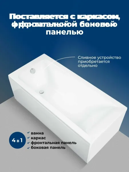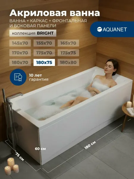 Акриловая ванна Aquanet Bright 347872 180x75 см с каркасом с фронтальной и боковой панелями купить