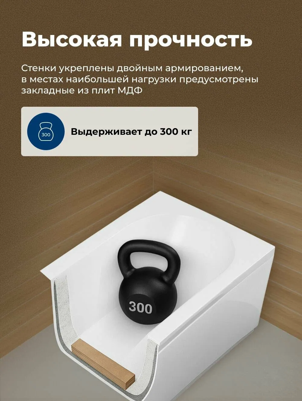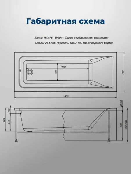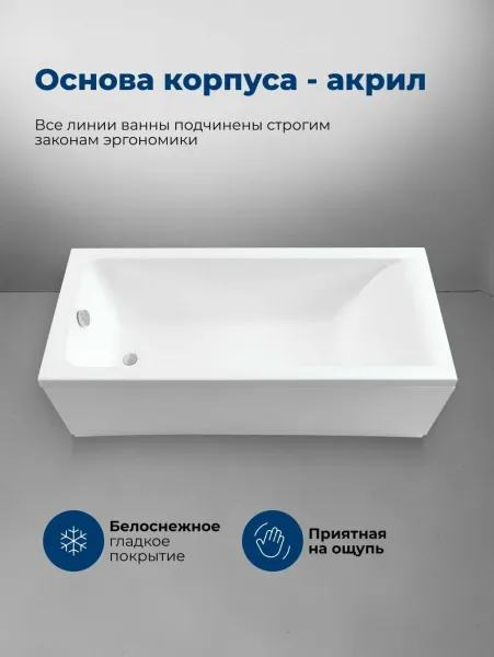 Акриловая ванна Aquanet Bright 180x75 создана с учетом растущего спроса на ванны простой прямоугольной формы в популярных размерах. Это модель с прямыми бортами и пологой спинкой, где соблюден идеальный угол для комфортного нахождения в ванне. Спинка плавно перетекает в бортик, поэтому релакс гарантирован даже без использования подголовника. Все линии ванны подчинены строгим законам эргономики. В современных условиях ширина ванны 75 см при длине 180 см - это наиболее востребованные габариты, так как прекрасно вписываются в стандартную планировку современных ванных комнат. Чаша в этой ванне устроена таким образом, что для обозначенных размеров в ней достигнут максимально возможный внутренний объем, а именно 214 литра, и это при комфортной глубине в 423 мм от слива ванны до борта. Ванна рассчитана на нагрузку свыше 300 кг, так что даже крепкий мужчина сможет без опаски находиться в ней. Двойной слой армирования обеспечивает надежность чаши, а закладные из МДФ-плит в местах наибольшей нагрузки усиливают эффект.