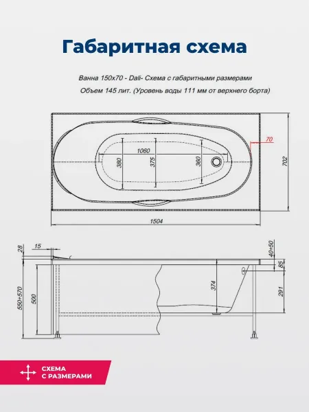 Ванна Dali Aquanet — эргономичная модель, созданная с учетом анатомических особенностей человека. Компактная чаша изготовлена из литьевого акрила толщиной 0,5 см — гипоаллергенного материала, устойчивого к деформациям. Комфорт и безопасность при проведении гигиенических процедур обеспечивает пологая спинка и антискользящее покрытие. За счет великолепных теплоизоляционных характеристик материала вода не остывает в течение долгого времени. На непористой поверхности не образуется налет и не скапливаются загрязнения.