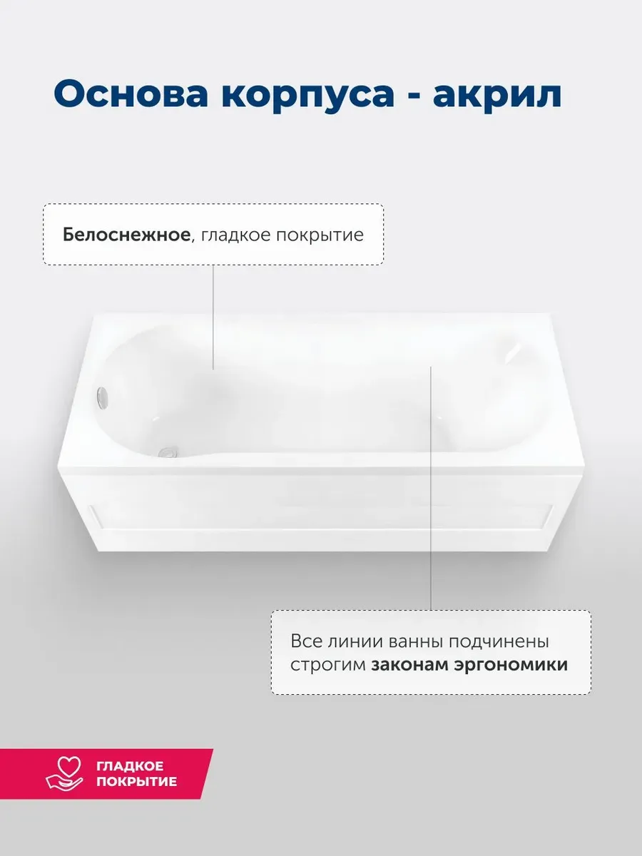 Акриловая ванна Aquanet Light 347155 170x70 см с каркасом и фронтальной панелью купить