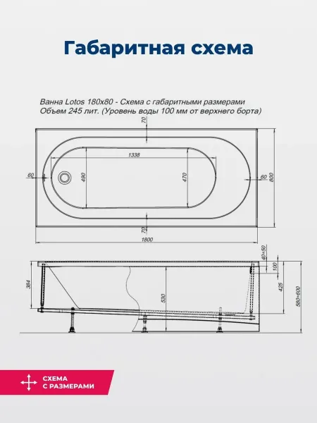 Акриловая ванна Aquanet Lotos 347161 180x80 см с каркасом и фронтальной панелью