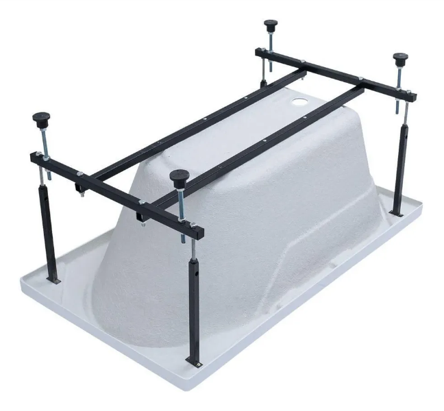 Ванна уже установлена на жесткий сварной каркас из металлического профиля. Металлические детали каркаса подвергаются трехступенчатой обработке, когда сначала профильная труба проходит абразивную зачистку на специальном станке, после чего готовые детали обрабатывают каустической содой, и, просушив, покрывают с помощью электростатического распылителя молотковой краской по металлу. Это гарантирует равномерность окрашивания и стойкость покрытия.