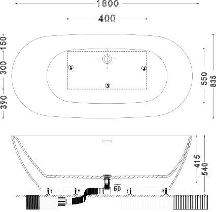 Акриловая отдельностоящая ванна, изготовленная из 100% литьевого акрила, имеет глянцевую, непористую поверхность, что препятствует развитию бактерий и грязи.
