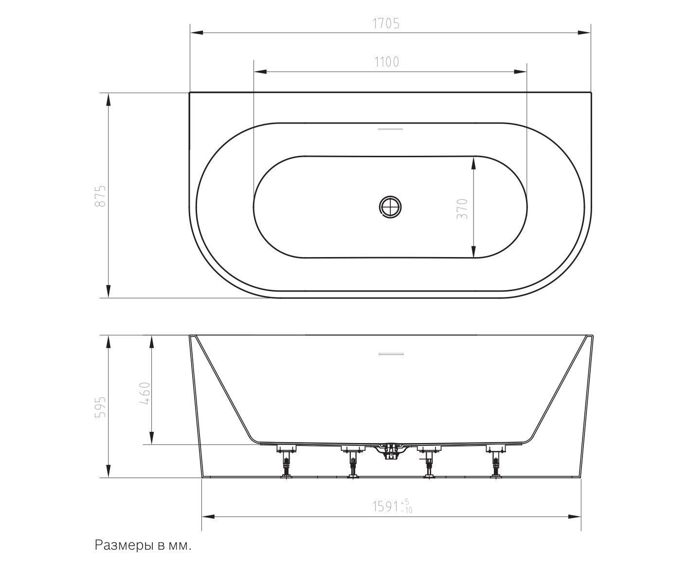 Акриловая пристенная ванна, изготовленная из 100% литьевого акрила, имеет глянцевую, непористую поверхность, что препятствует развитию бактерий и грязи.