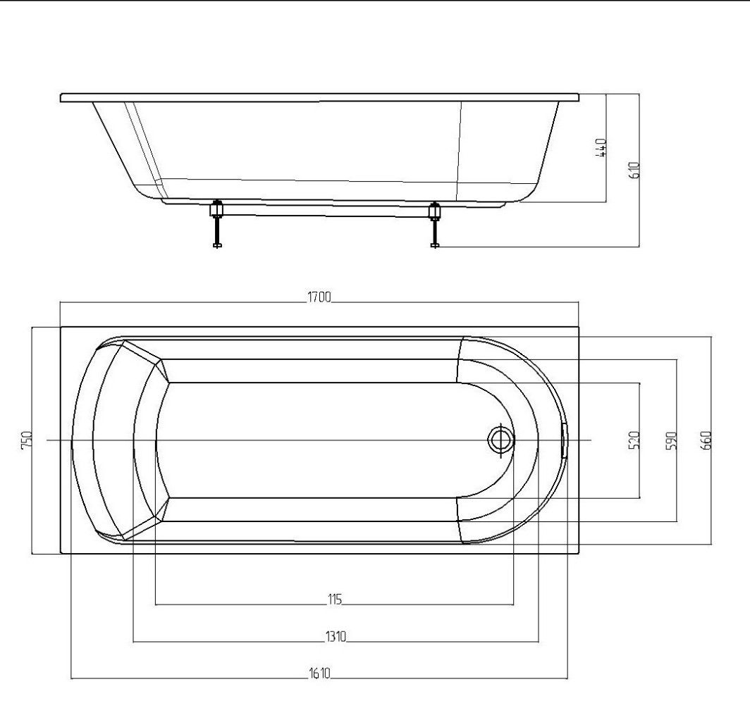 Акриловая ванна AZARIO ADELINA AV.0010170 прямоугольная 170*75