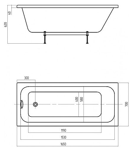 Акриловая ванна AZARIO BELLA AV.0020165 прямоугольная 165*70