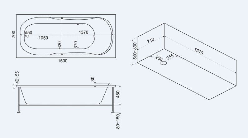 Акриловая ванна Bas Ибица 150x70 см с каркасом