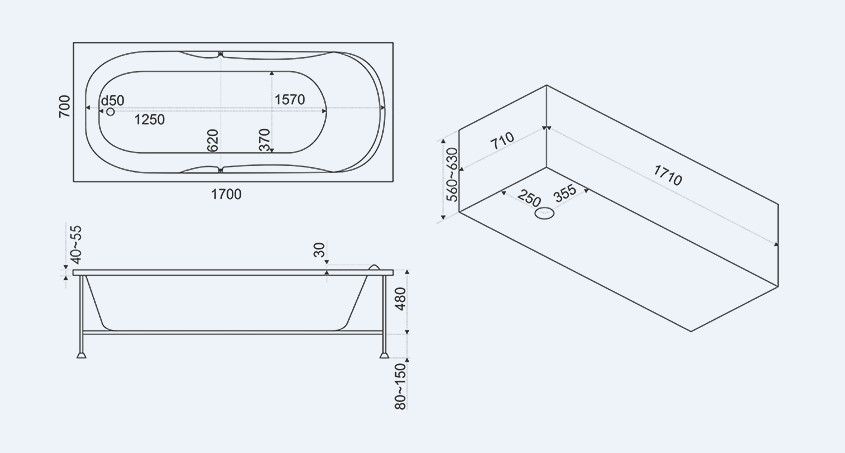 Акриловая ванна Bas Нептун 170x70 см с каркасом