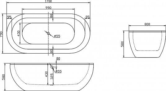 Акриловая ванна BelBagno отдельностоящая, белая BB13-1700 купить