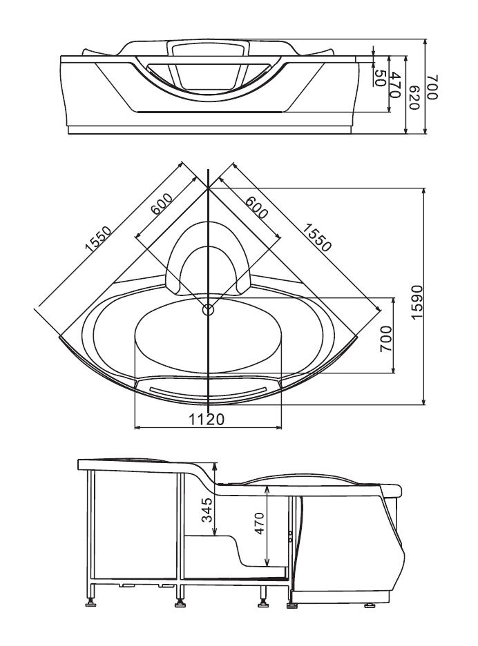 Акриловая ванна Gemy G9025 II K 155x155x70 купить