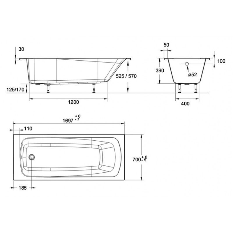 Акриловая ванна Jacob Delafon PATIO E6812RU-01 170 x 70