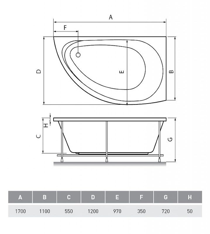 Акриловая ванна Relisan Eco Plus Ибица 170х120 R Гл000023038 без гидромассажа