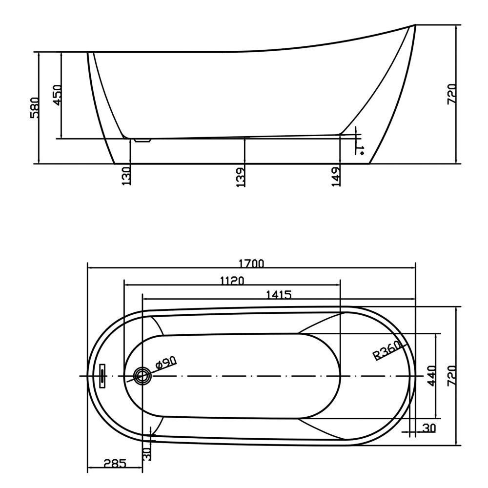 Акриловая ванна Swedbe Vita 8816 170x72см белый