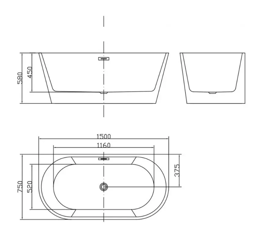 - Расположение слива: по центру.