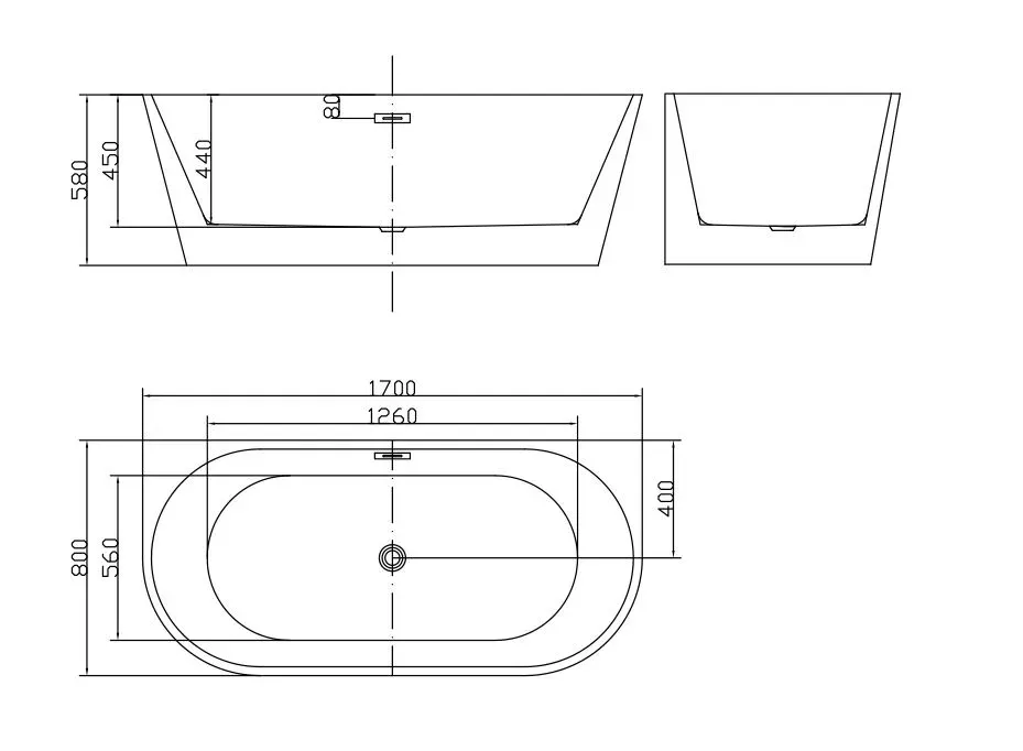 Акриловая ванна Triton Grant GT-170-80 Щ0000059145 170x80 см белый