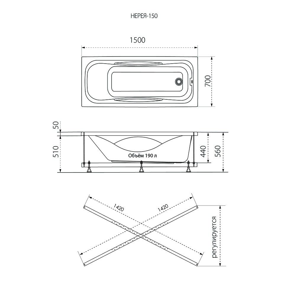 Стандартные размеры, см:150x70