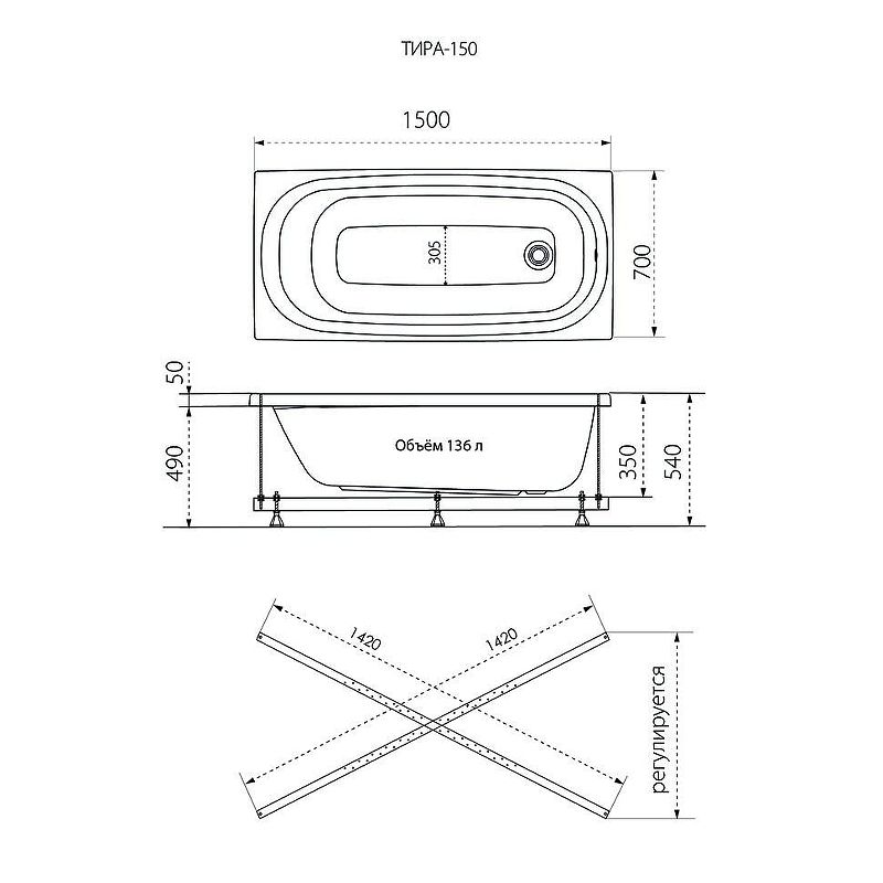 Акриловая ванна Triton Тира Щ0000016666 150x70 см белый
