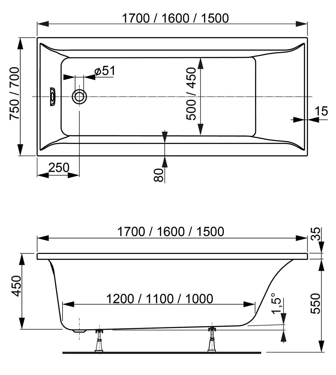Акриловая ванна VagnerPlast Veronela VPBA167VEA2X-04 160x70см белый купить