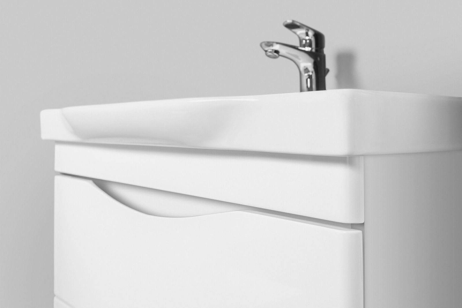 Утонченность в деталях: удобные интегрированные в фасад ручки идеально повторяют изгиб выступа раковины.Удобство:Функциональное преимущество: уникальная современная глубокая и удобная керамическая раковина.