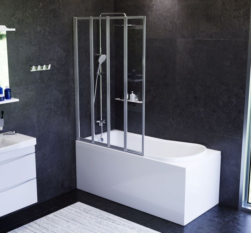 Шторка на борт ванны поворотно-складная:Цвет: хром.