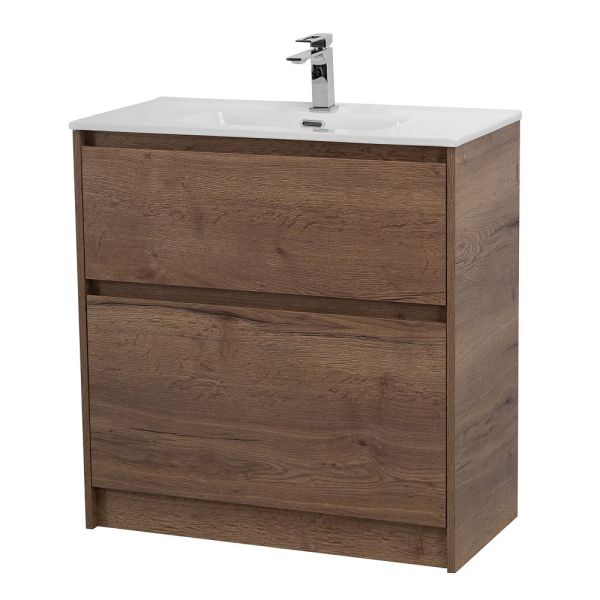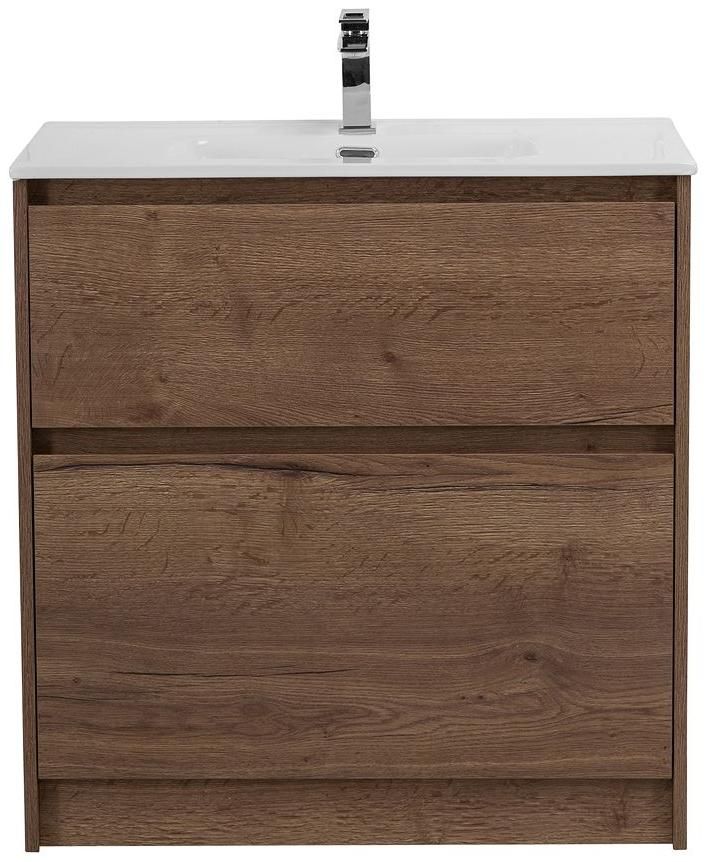 База под раковину BelBagno напольная с фрезерованными ручками по всей длине фасада с двумя выкатными ящиками, Rovere Tabacco, 805х390x840, KRAFT39-800 табачный дуб