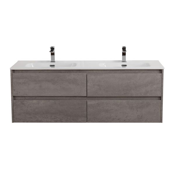 База под раковину BelBagno подвесная с четырьмя выкатными ящиками для раковины с двумя чашам, 1200x460x500, KRAFT-1200-4C-SO-2-CG цемент серый купить
