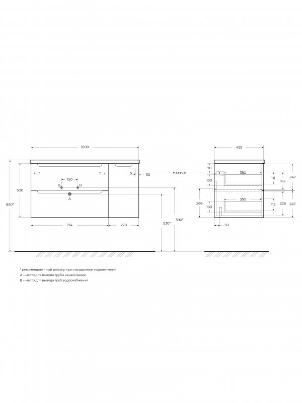 База под раковину BelBagno подвесная с двумя выкат. ящ. и одной распаш. дверцей, левосторонн 1000x455x500, ETNA-1000-2C-1A-SO-AO-L Голубой Матовый
