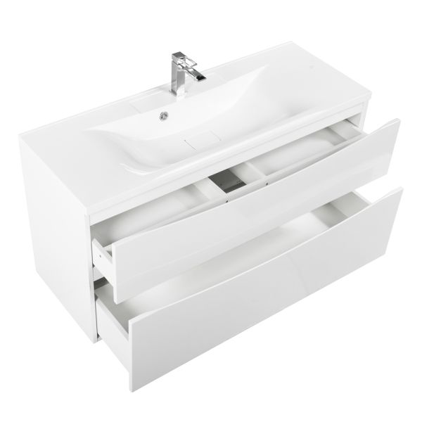 База под раковину BelBagno подвесная с двумя выкатными ящиками, Bianco Lucido, 1100x450x600, MARINO-H60-1100-2C-SO-BL-P белый глянцевый
