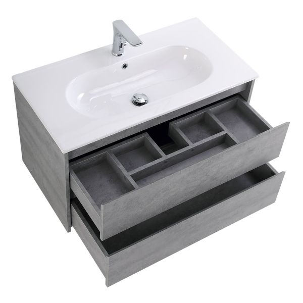 База под раковину BelBagno подвесная с двумя выкатными ящиками, Cemento Grigio, 800x460x500, KRAFT-800-2C-SO-CG цемент серый
