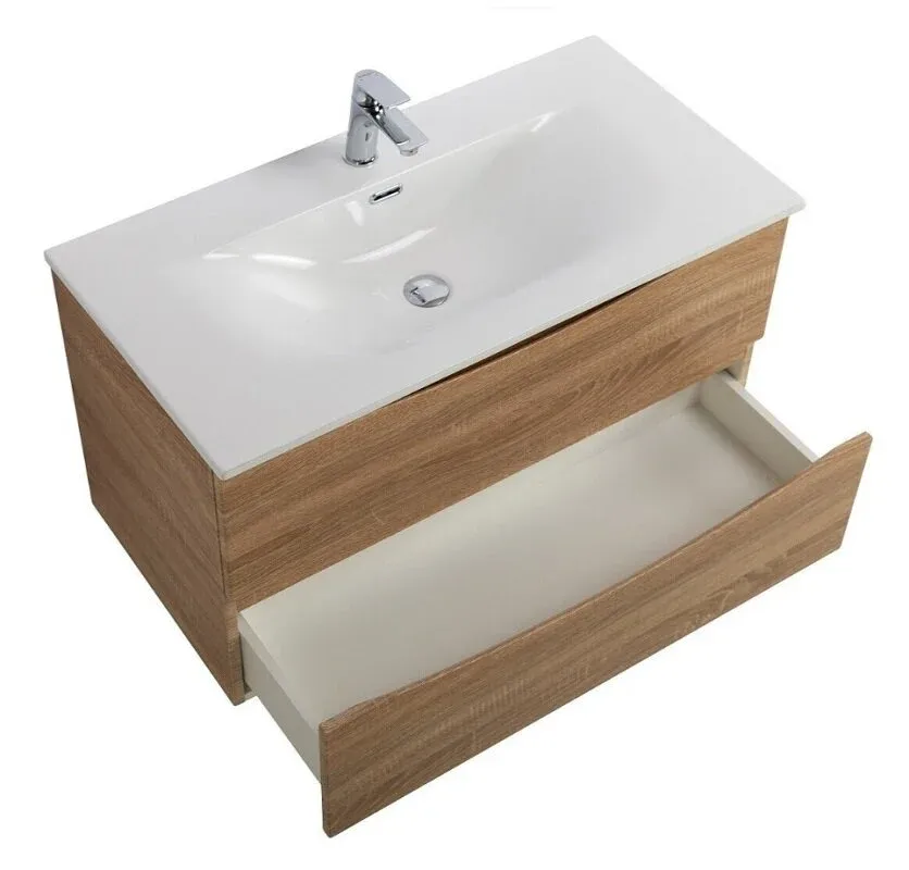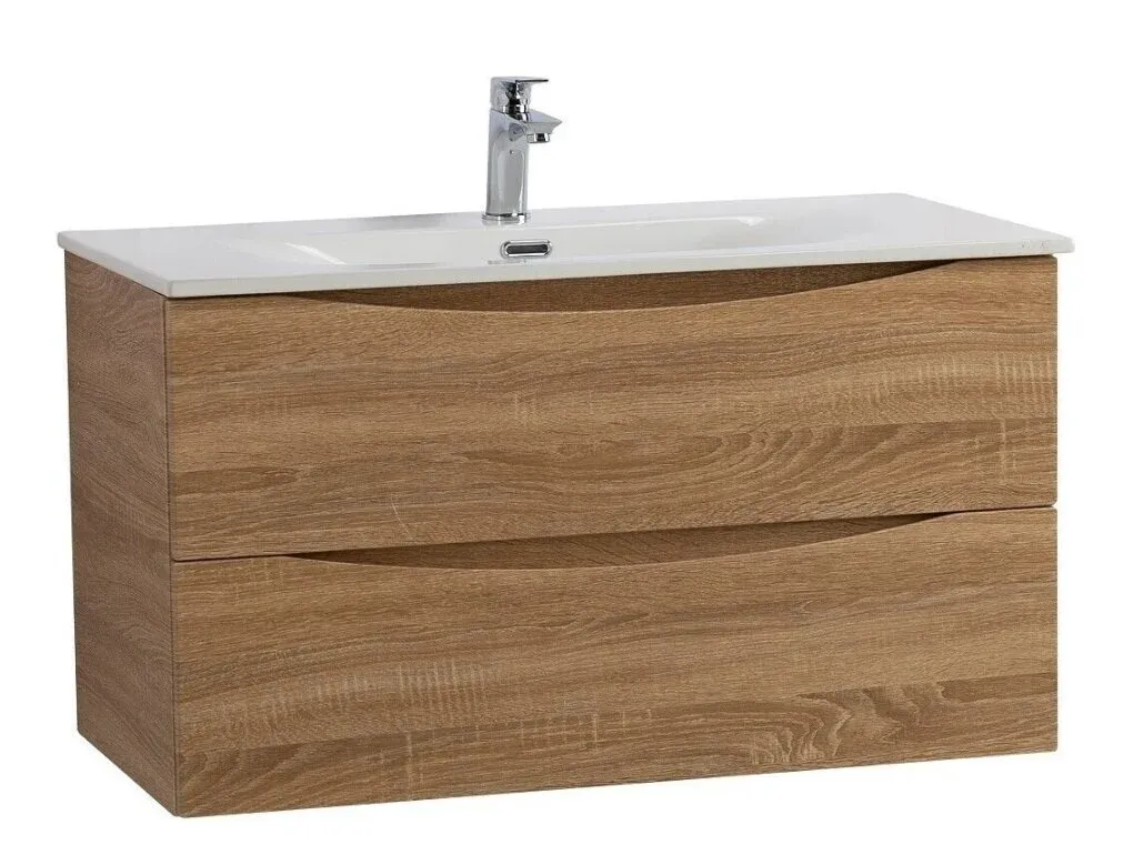 База под раковину BelBagno подвесная с двумя выкатными ящиками, Rovere Bianco, 996x457x500, MARINO-CER-N-1000-2C-SO-WO-P дуб светлый