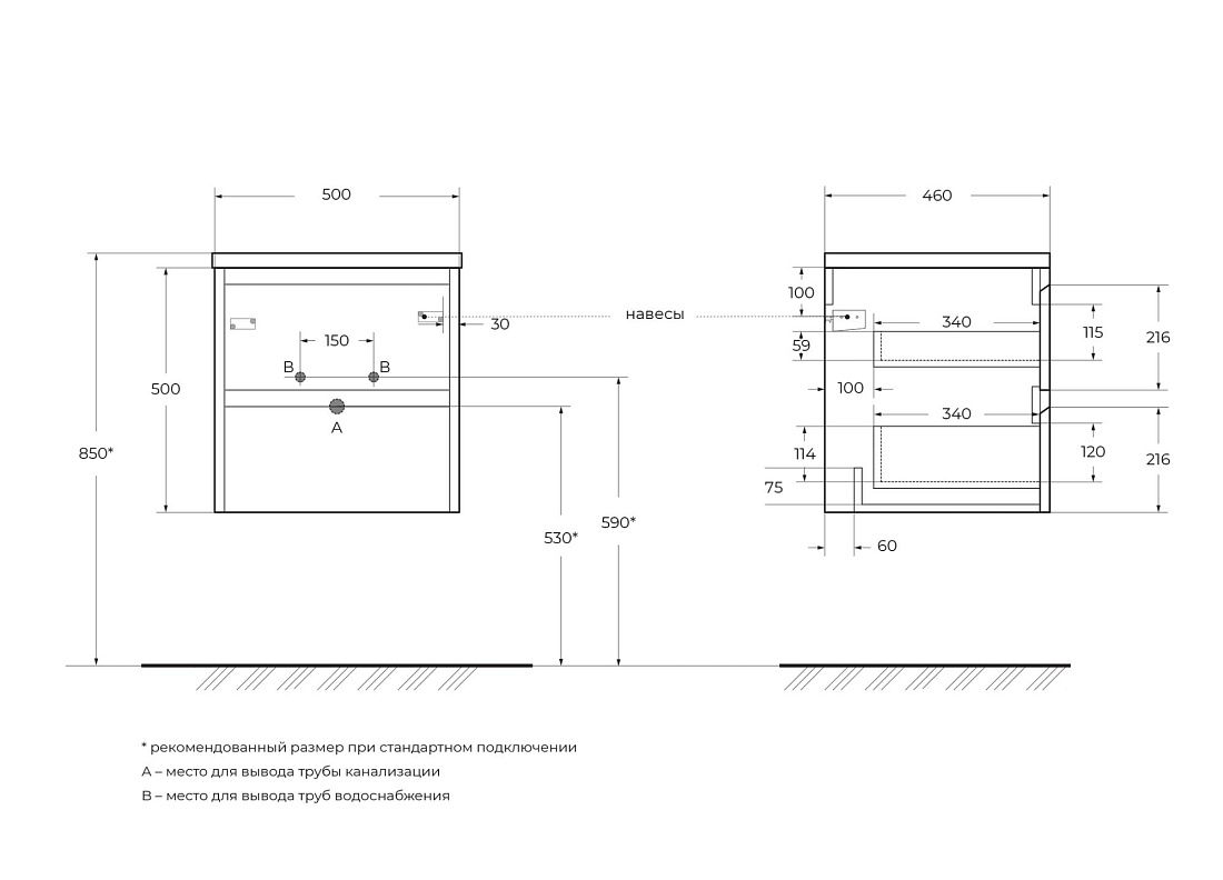 База под раковину BelBagno подвесная с двумя выкатными ящиками, Rovere Nebrasca Nature, 500x460x500, KRAFT-500-2C-SO-RNN дуб натуральный купить