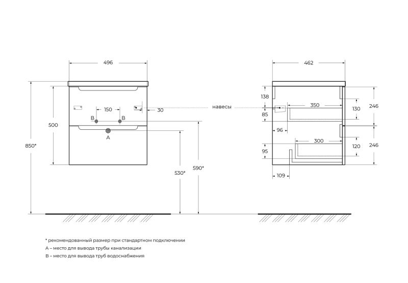 База под раковину BelBagno подвесная с двумя выкатными ящиками, с доводчиками, 900x455x500, ETNA-900-2C-SO-GSO темно-серый матовый купить