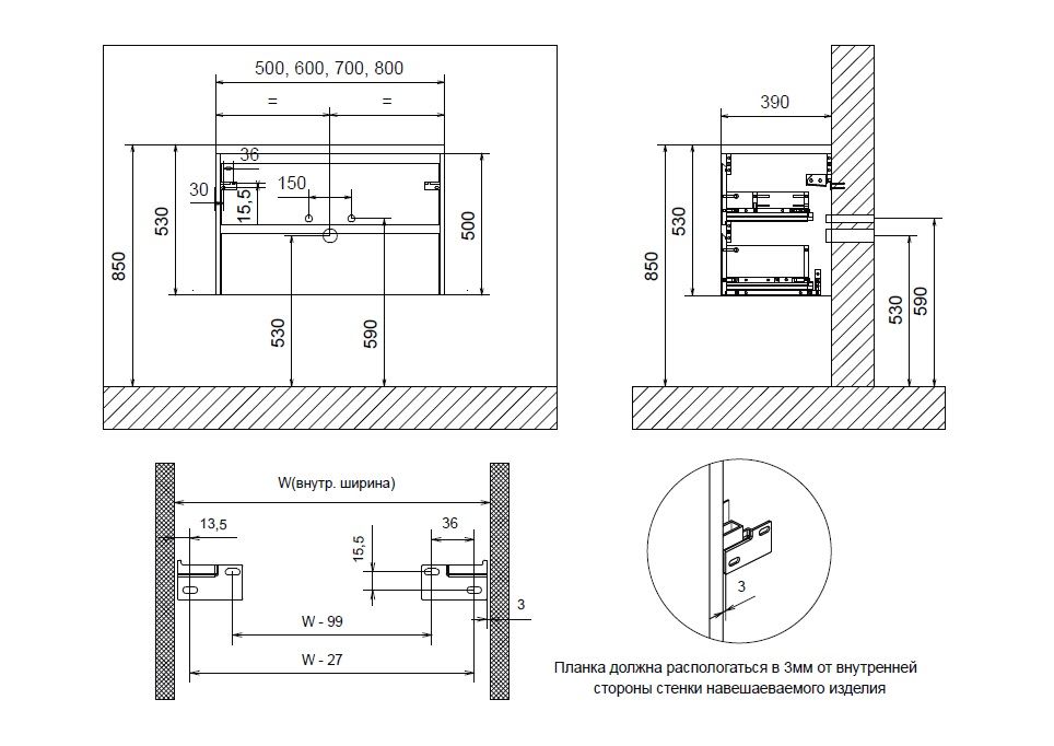 База под раковину BelBagno подвесная с двумя выкатными ящиками, с доводчиками, Rovere Nature, 500x390x500, ETNA39-500/390-2C-SO-RN-P дуб натуральный купить