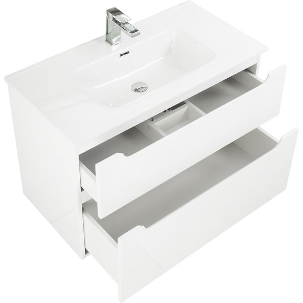 База под раковину BelBagno подвесная с двумя выкатными ящиками, с доводчиками, Bianco Lucido, 800x455x600, ETNA-H60-800-2C-SO-BL-P белый глянцевый