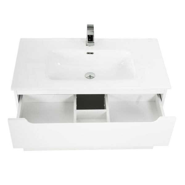 База под раковину BelBagno подвесная с двумя выкатными ящиками, с доводчиками, Bianco Lucido, 900x455x600, ETNA-H60-900-2C-SO-BL-P белый глянцевый