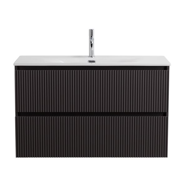 База под раковину BelBagno подвесная с фрезеров. ручк. по всей длине фасада с двумя выкатн. ящ.,черный1000x395x608,UNO-MINI-1000-2C-SO-GSO темно-серый матовый