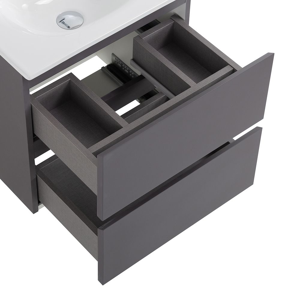 База под раковину BelBagno подвесная с фрезерованными ручк. по всей дл. фасада с 2 выкатн. ящ., 500x395x500,39-500/390-2C-SO-GSO темно-серый матовый