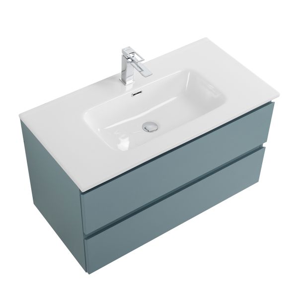 База под раковину BelBagno подвесная с фрезерованными ручками по всей длине фасада с двумя выкат. ящ., 900x455x500, KRAFT-900-2C-SO-AO голубой матовый