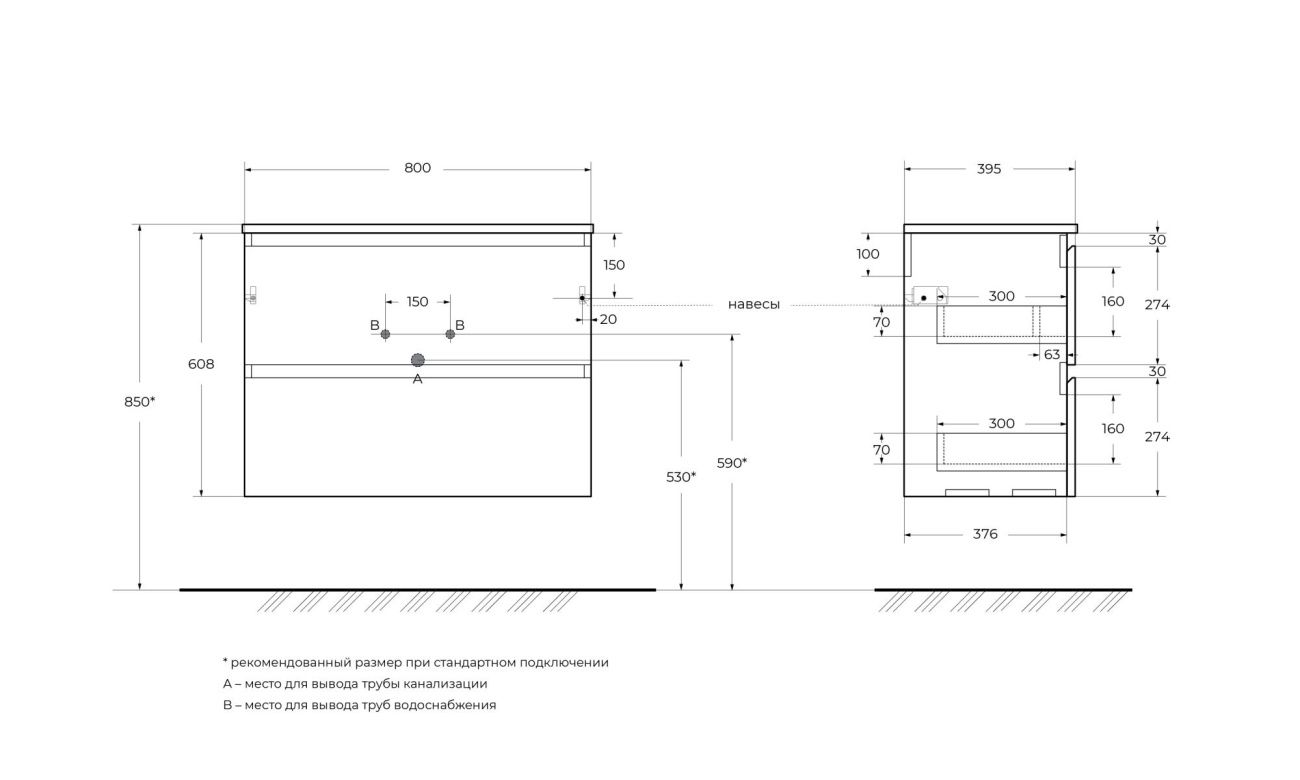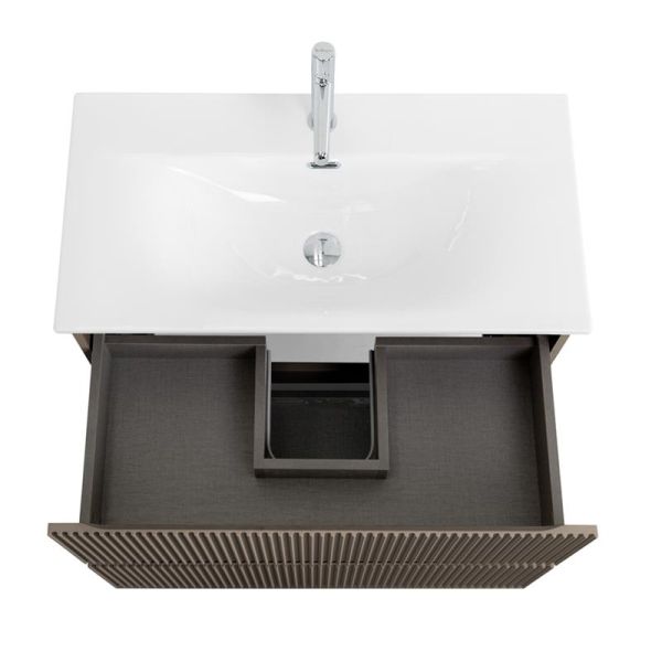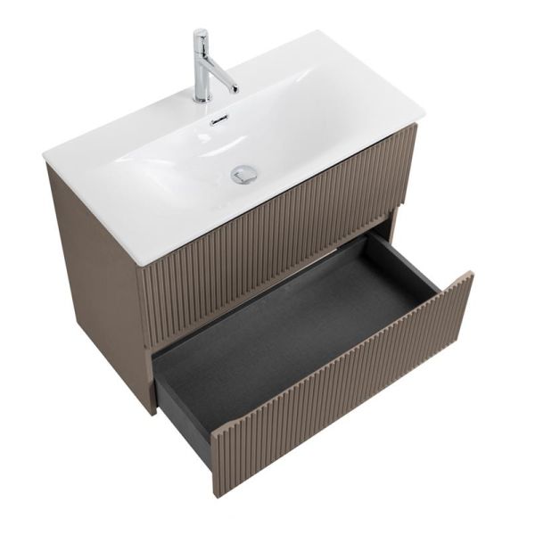 База под раковину BelBagno подвесная с фрезерованными ручками по всей длине фасада с двумя выкатн. ящ., 800x395x608,UNO-MINI-800-2C-SO-СO бежевый матовый