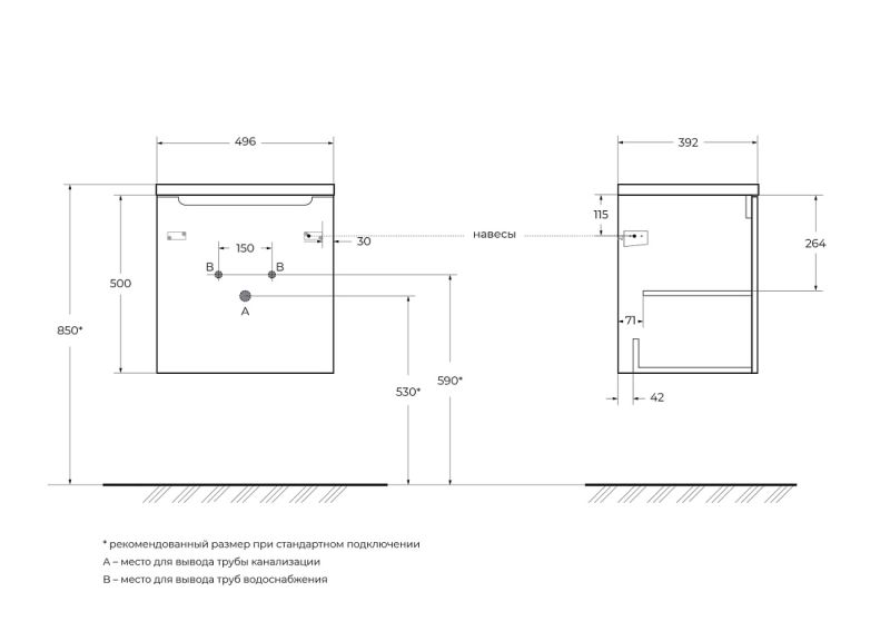 База под раковину BelBagno подвесная с одной распашной дверцей, с одной полкой, левосторонняя, Rovere Moro, 496x392x500, ETNA-500-1A-SO-RW-P-L дуб темный купить