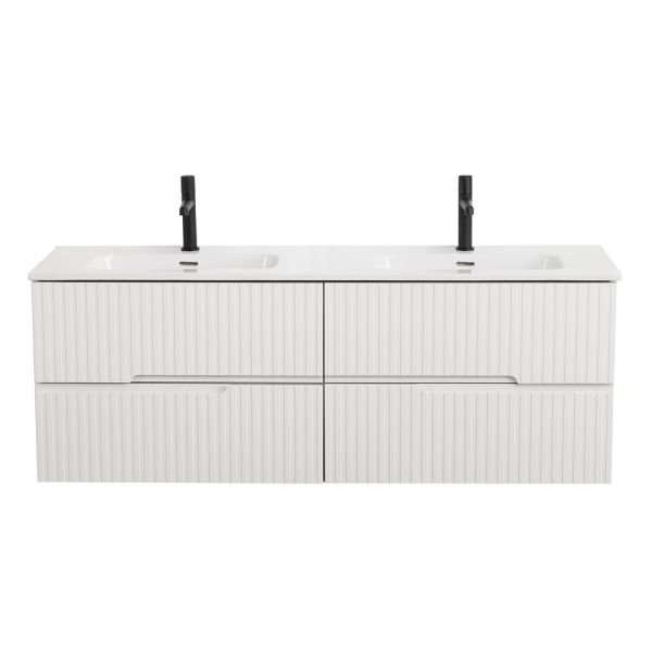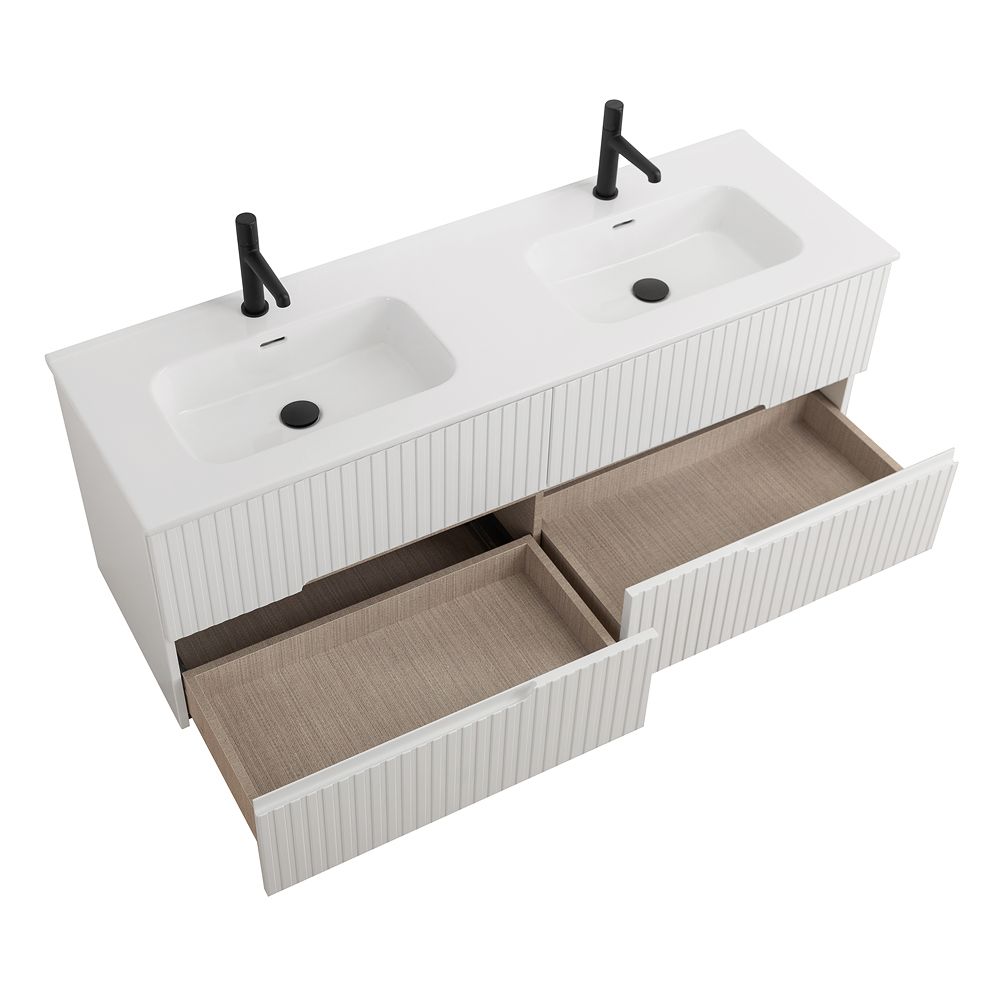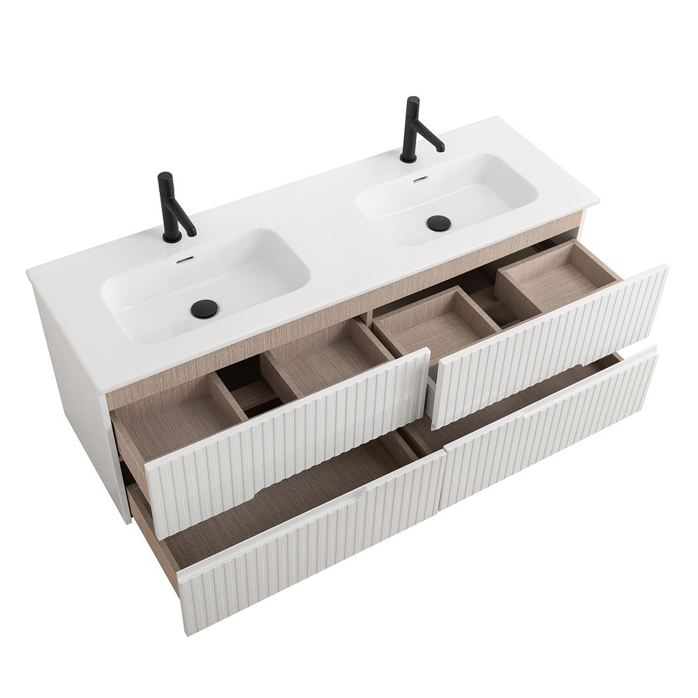 База под раковину Cezares подвесная с четырьмя выкатными ящиками для раковины с двумя чашами, Bianco Lucido, 1400x450x500, DUET-N-1400-4C-SO-2-BL