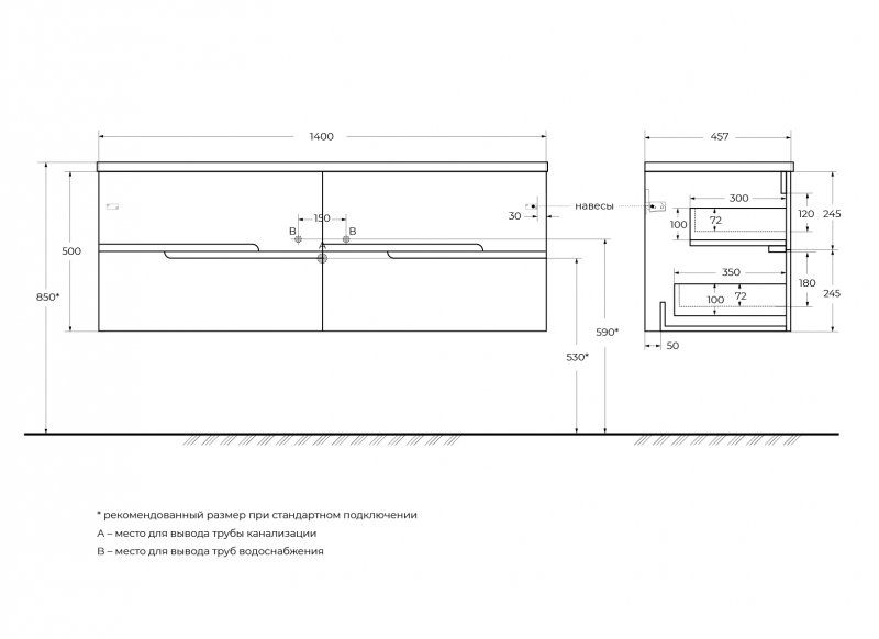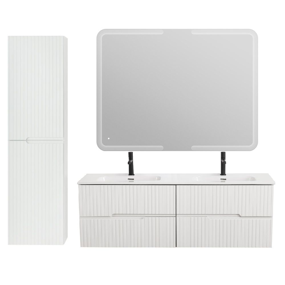 База под раковину Cezares подвесная с четырьмя выкатными ящиками для раковины с двумя чашами, Bianco Lucido, 1400x450x500, DUET-N-1400-4C-SO-2-BL купить