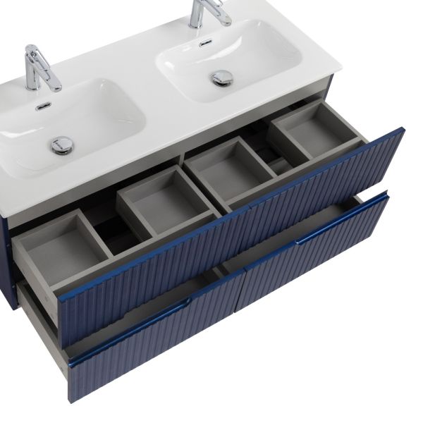 База под раковину Cezares подвесная с четырьмя выкатными ящиками для раковины с двумя чашами, Sapfiro, 1200x457x500, DUET-N-1200-4C-SO-2-SPF-P