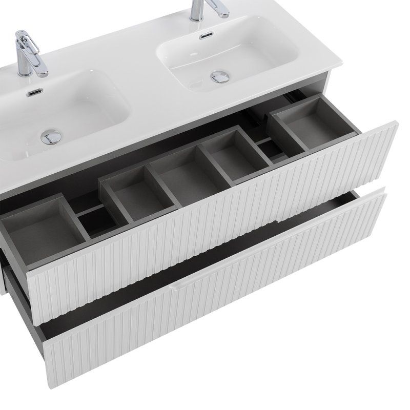 База под раковину Cezares подвесная с двумя выкатными ящиками для раковины с двумя чашами, Bianco Lucido, 1200x457x500, DUET-N-1200-2C-SO-2-BL