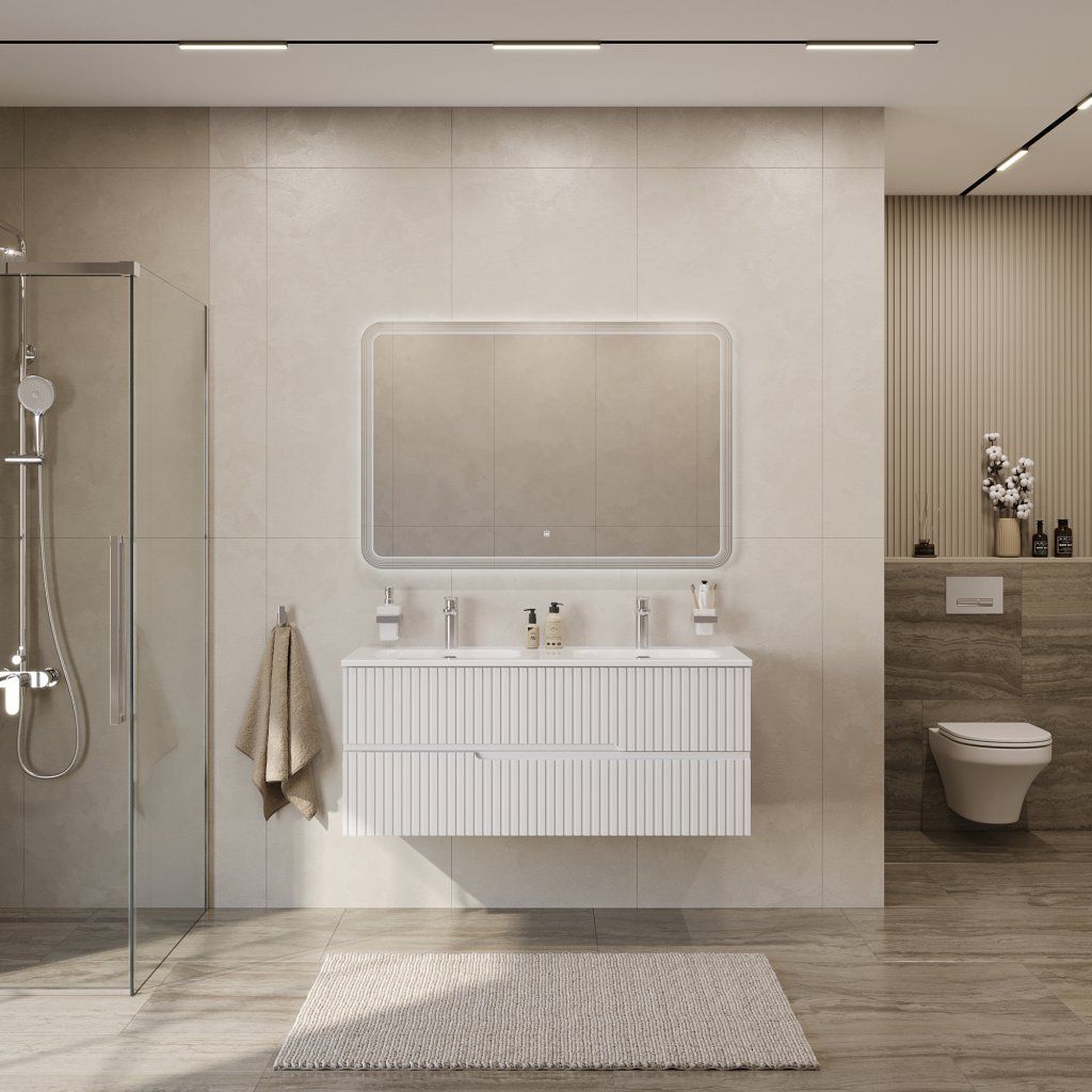 База под раковину Cezares подвесная с двумя выкатными ящиками для раковины с двумя чашами, Bianco Lucido, 1200x457x500, DUET-N-1200-2C-SO-2-BL купить